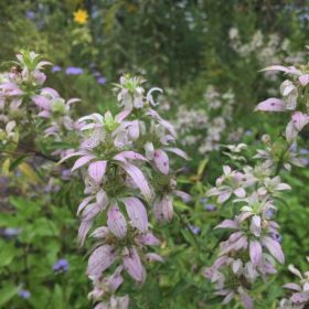 On the flip side, Dotted Horsemint is your sun loving, drought tolerant wild child. This pollinator magnet bursts onto the scene with whorls of soft purple and cream flowers, and that speckled coloring? It’s not just stylish, it’s a signal to bees and butterflies that dinner is served. A member of the mint family (but don’t worry, it behaves), it has aromatic foliage and a tough as nails attitude. Seriously, this plant would probably thrive on a traffic island.